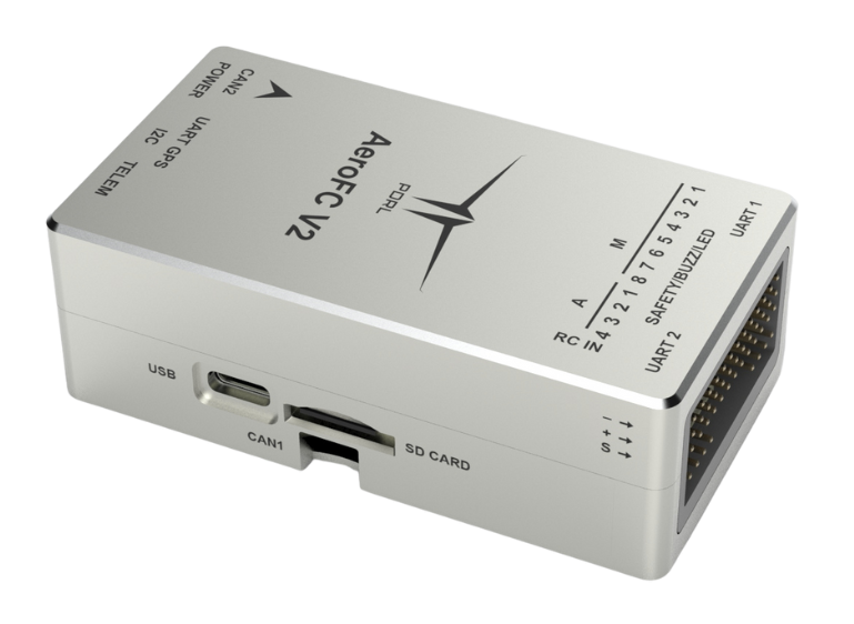 AeroFC V2 Flight Controller offers 8 PWM outputs for motors, 4 auxiliary PWM/GPIO outputs, and 2 CAN buses, 3 UART ports for complex configurations and seamless connectivity. The dedicated R/C inputs for PPM and S. Bus signals ensure compatibility with a wide range of external systems, giving you ultimate exibility in customizing your drone setup.