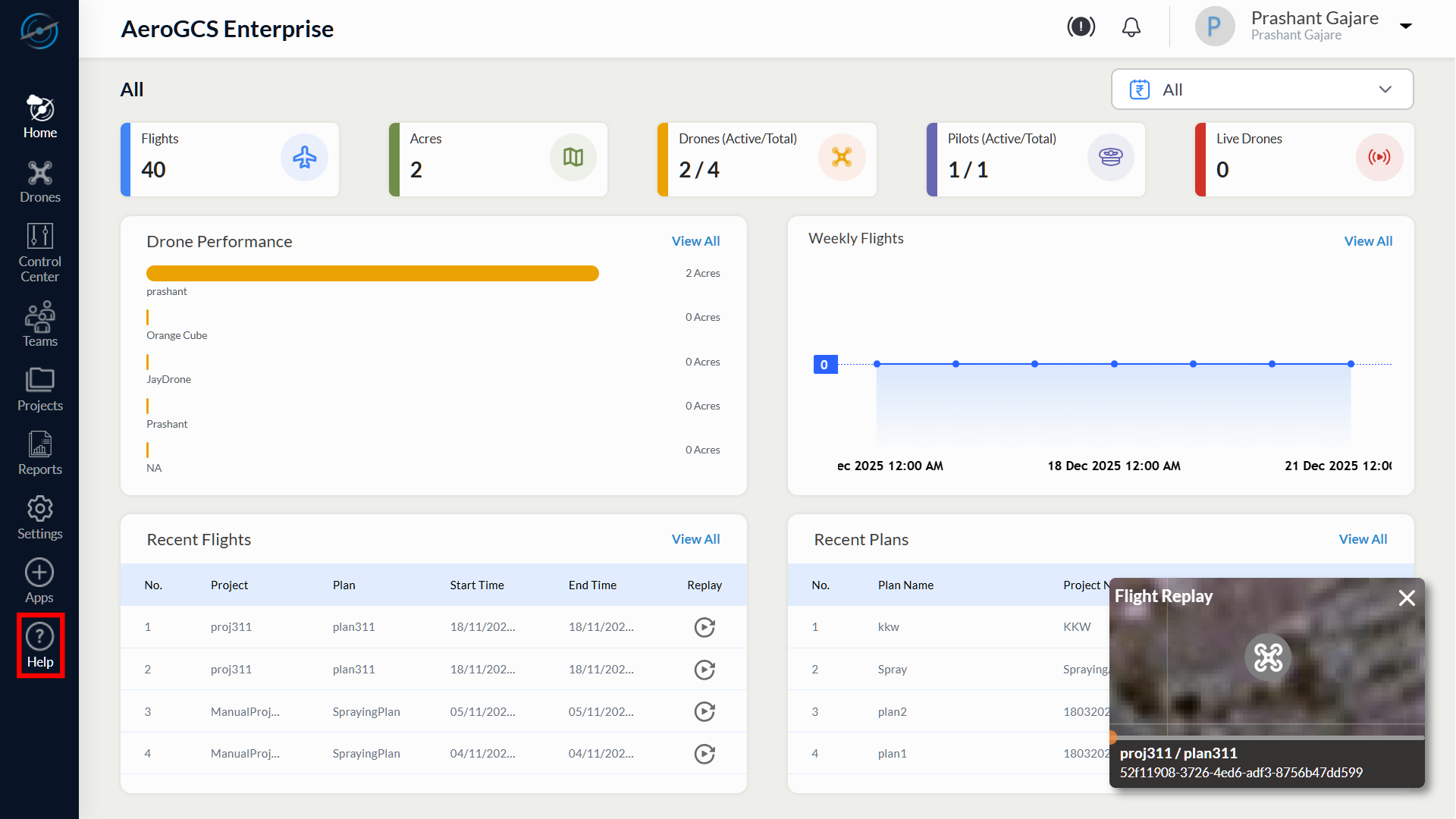 - Log in to the AeroGCS Enterprise web application.