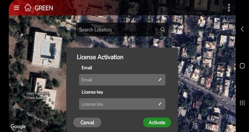 Subsequently, the following screen will be displayed, enabling the user to input the license key and initiate the activation process for the user’s AeroGCS GREEN Application.