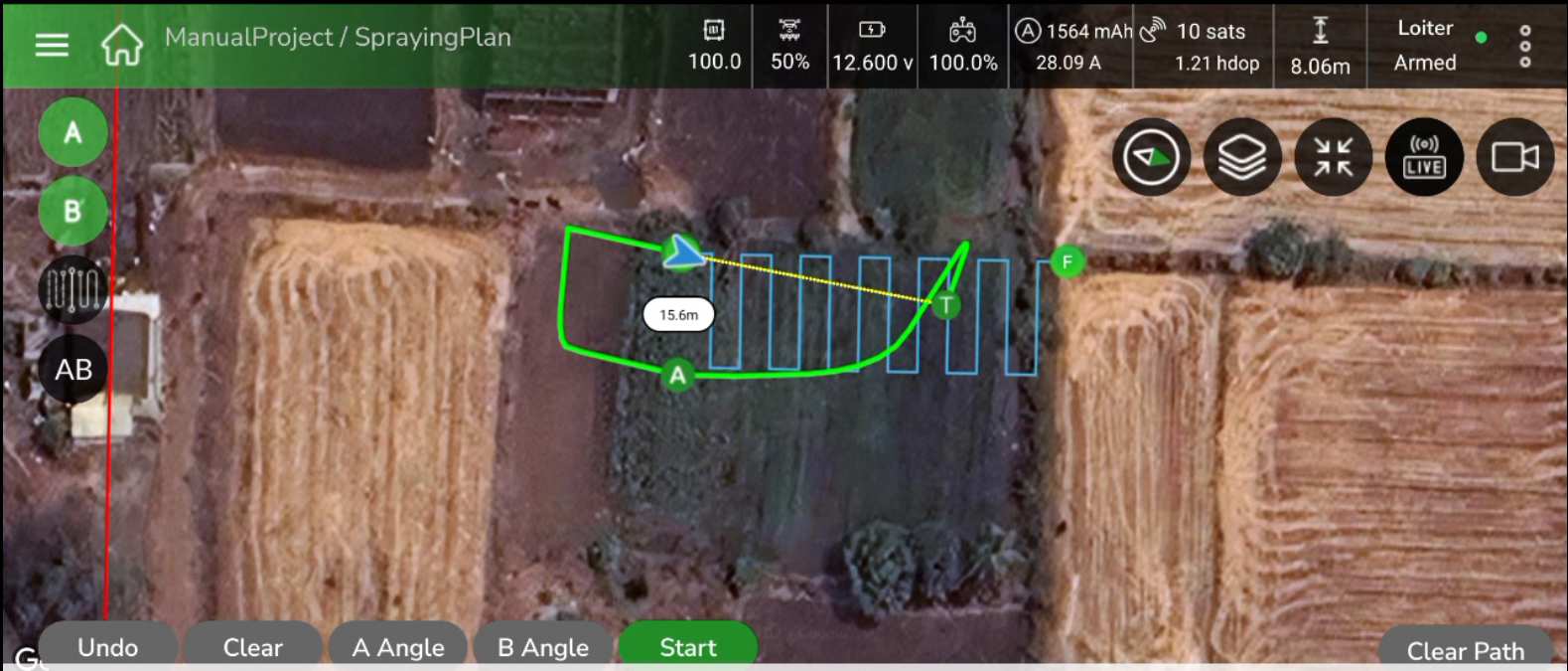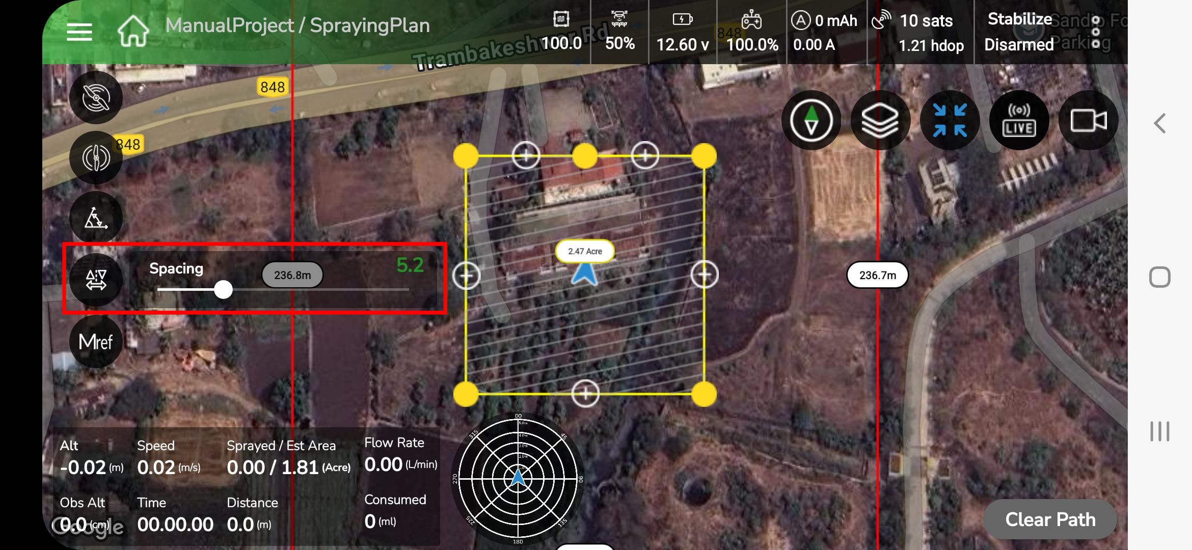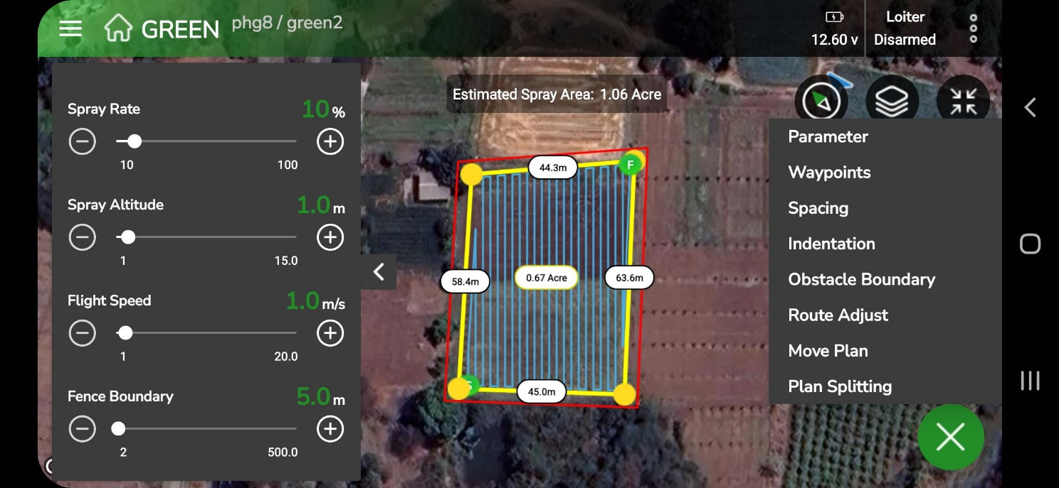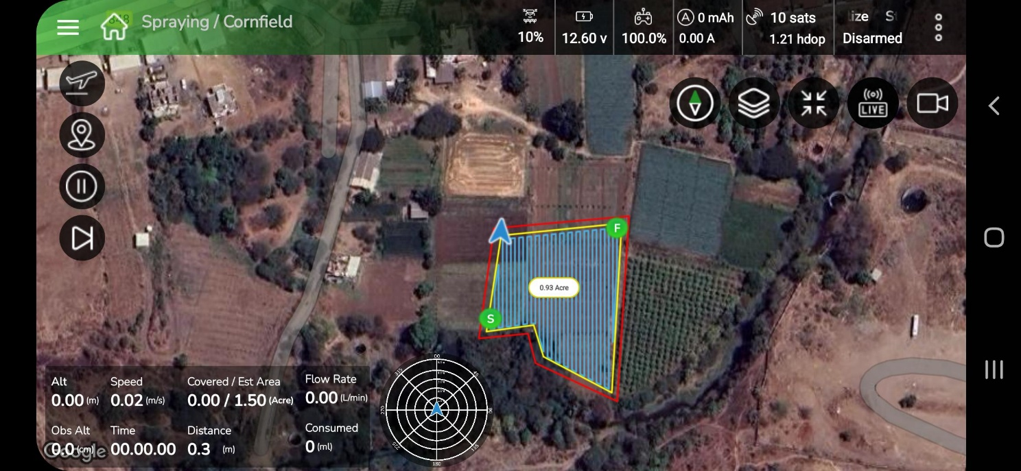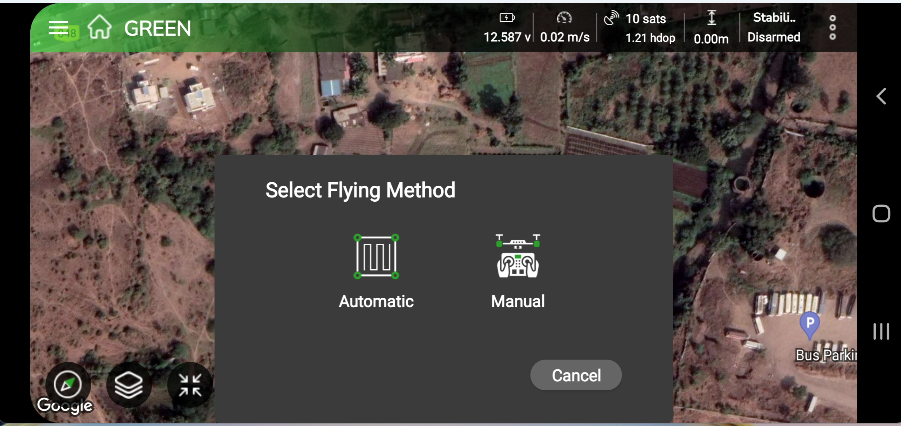 - Manual Method: In contrast, the manual method allows you to physically Arm the drone to fly manually on the field and then disarm the motors once the desired area has been covered.