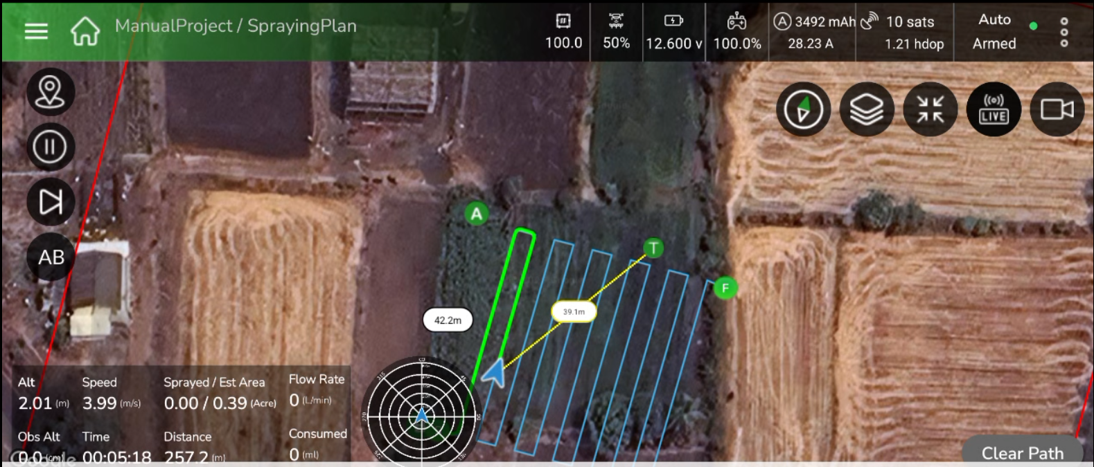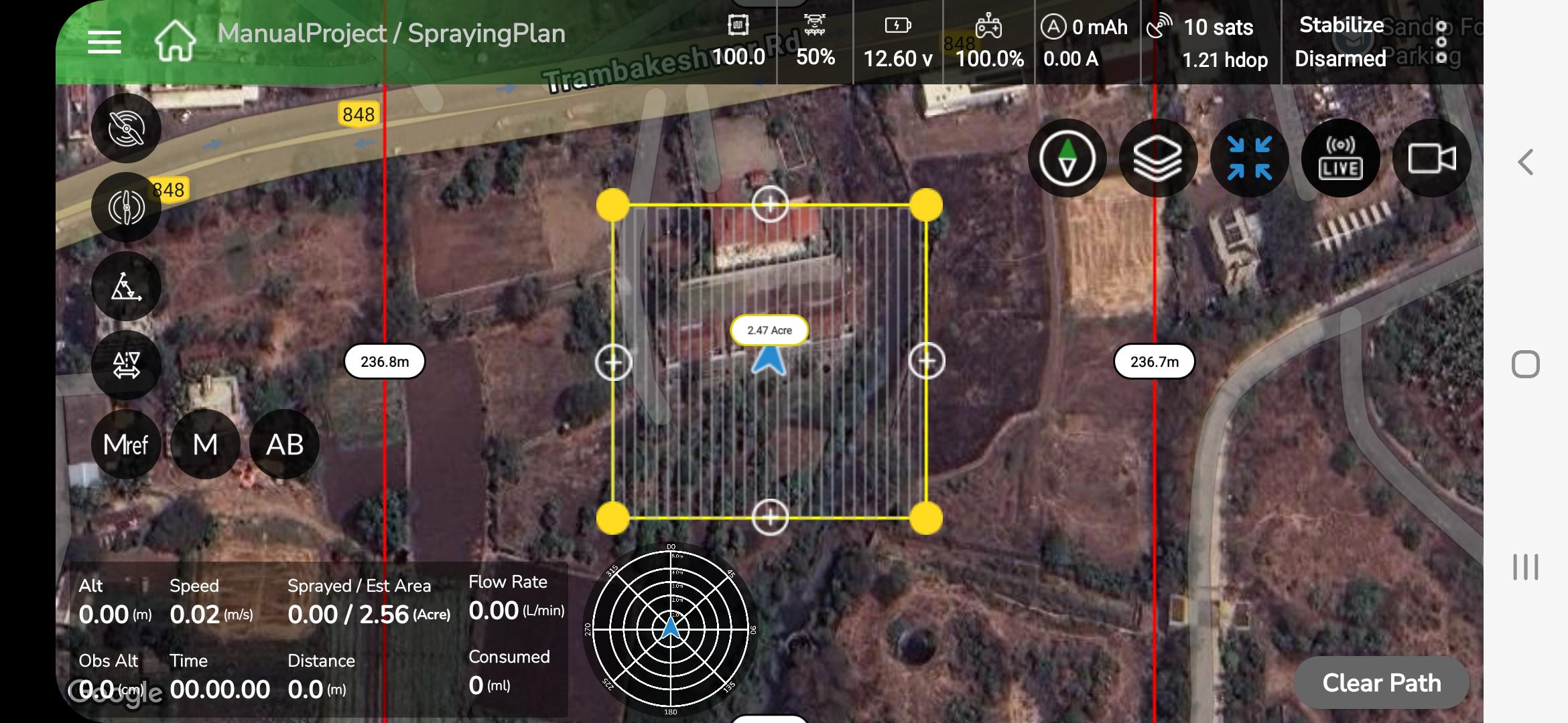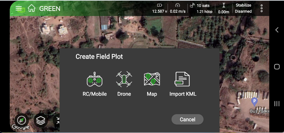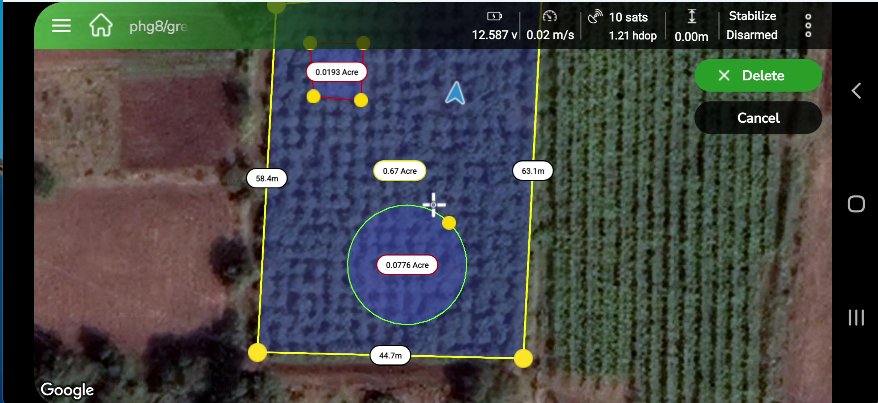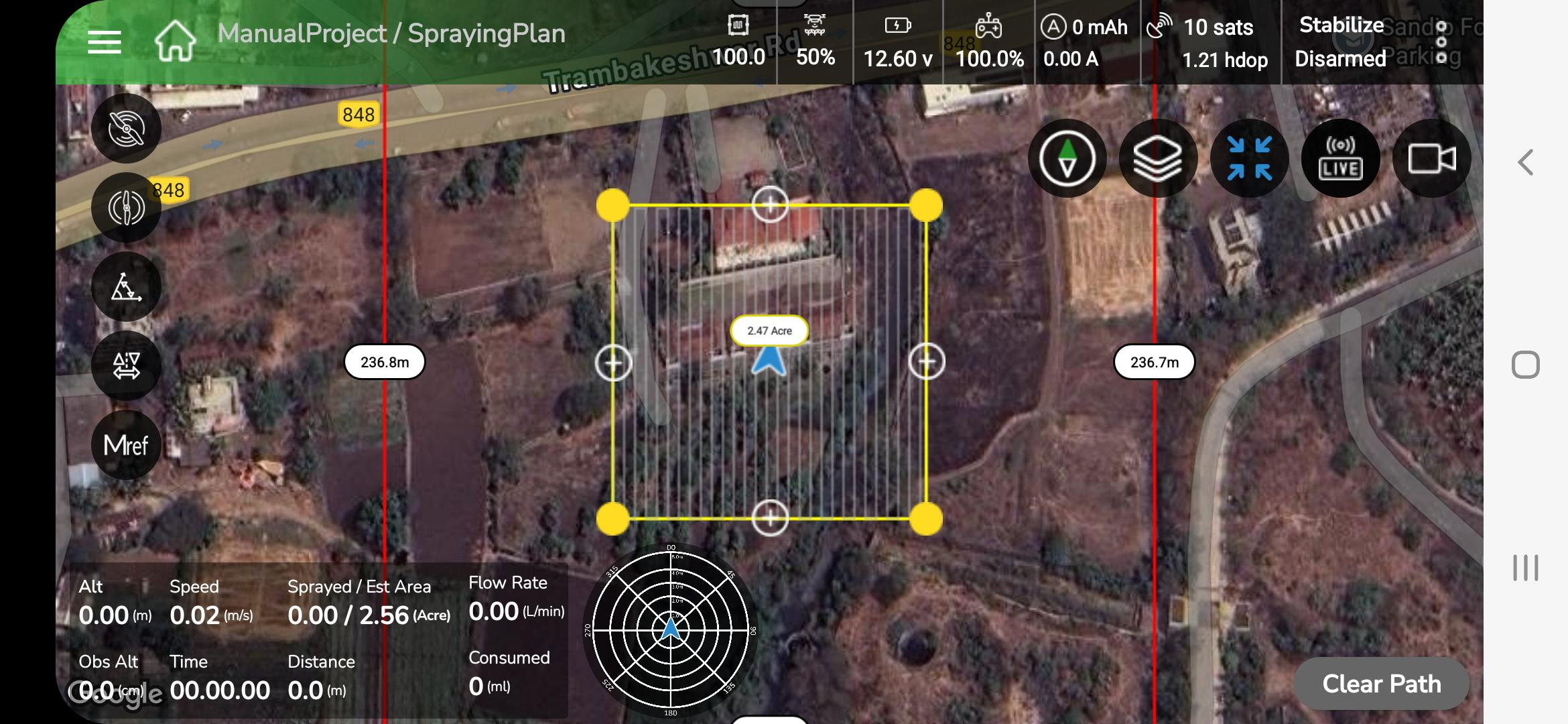 - Manual Method: In contrast, the manual method allows you to physically Arm the drone to fly manually on the field and then disarm the motors once the desired area has been covered.