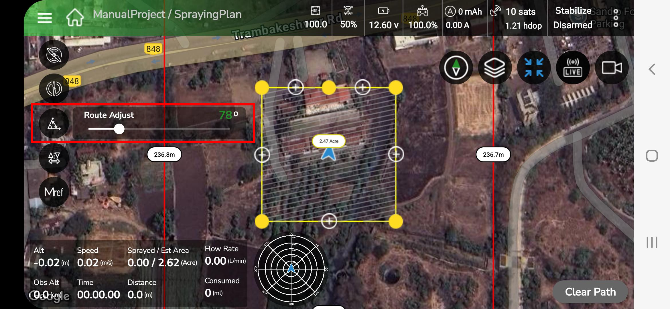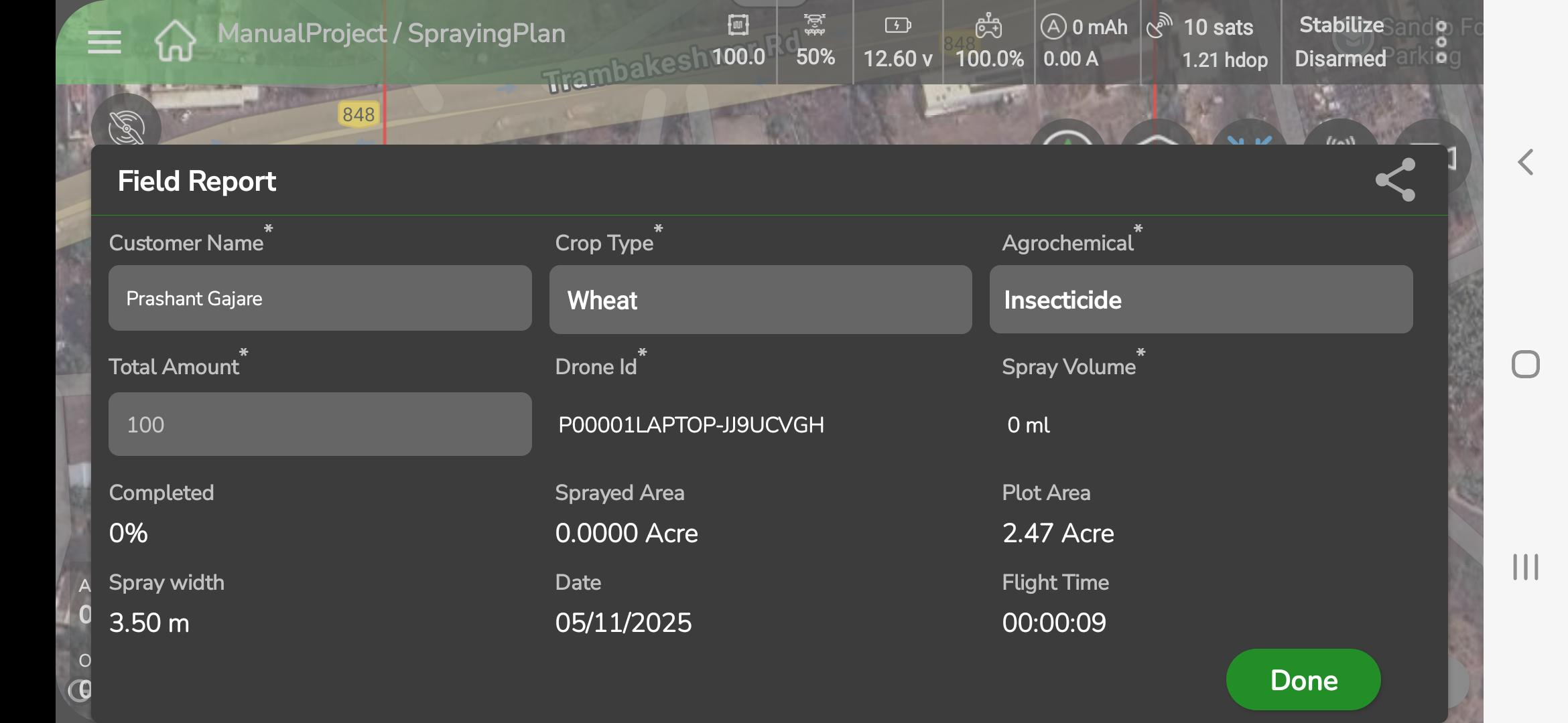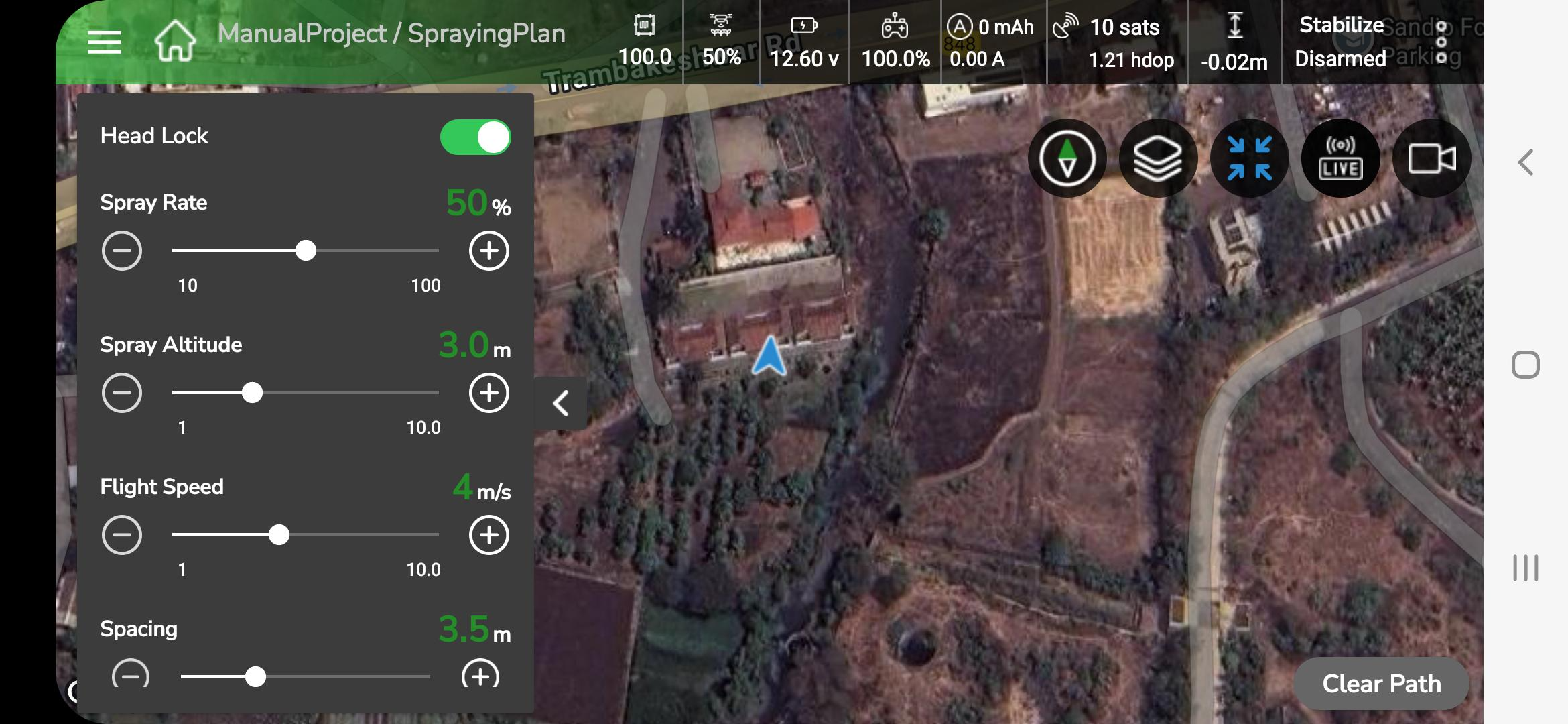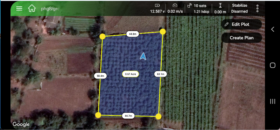 - Manual Method: In contrast, the manual method allows you to physically Arm the drone to fly manually on the field and then disarm the motors once the desired area has been covered.