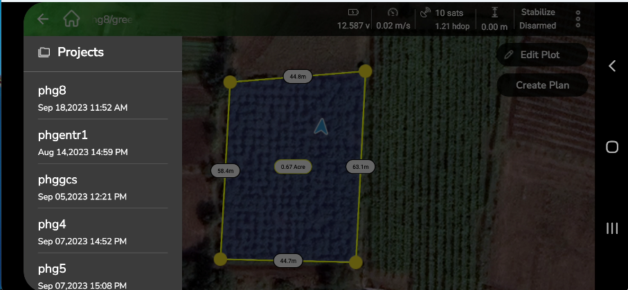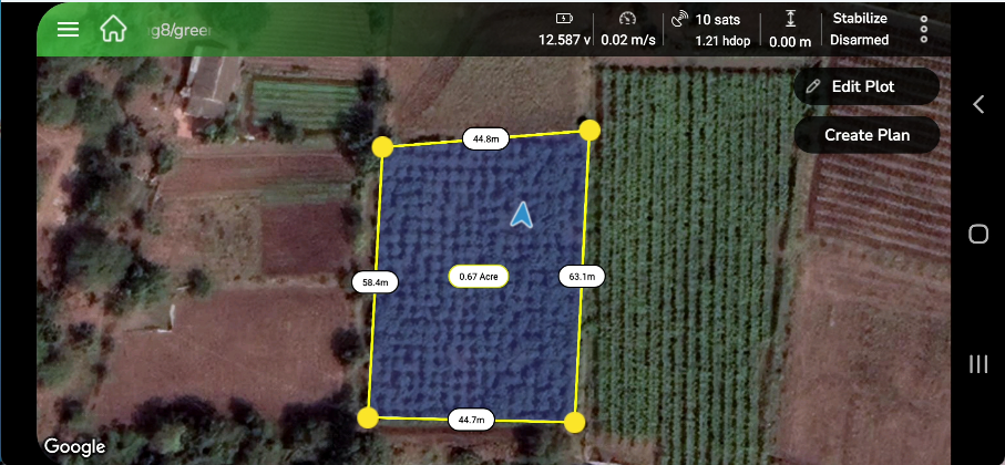 - Create Plan: Tap Create Plan to move to the plan creation stage for field operations.