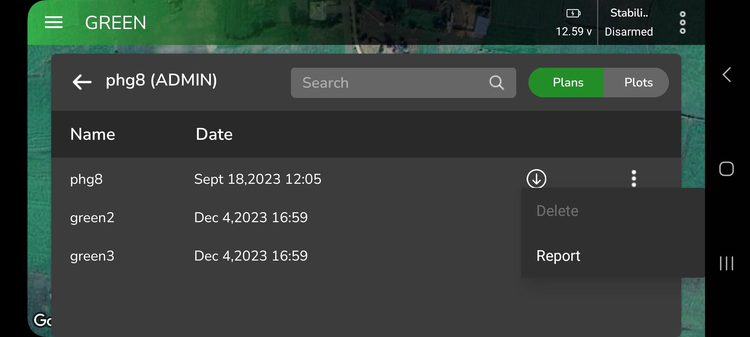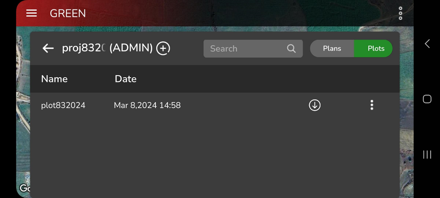 - Locate the project for which you want to download plans or plots from your AeroGCS GREEN