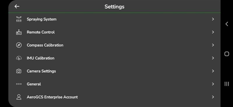 RPA settings are important for configuring and operating your Remotely Piloted Aircraft (RPA). To access these settings, tap the three dots in the upper-right corner of the dashboard and then tap Settings from the menu.