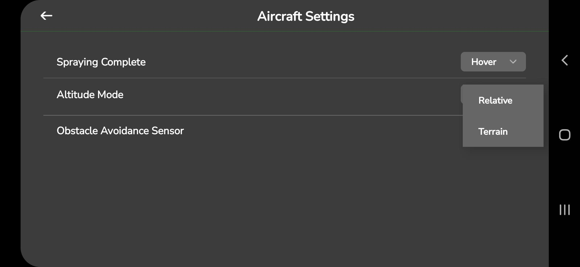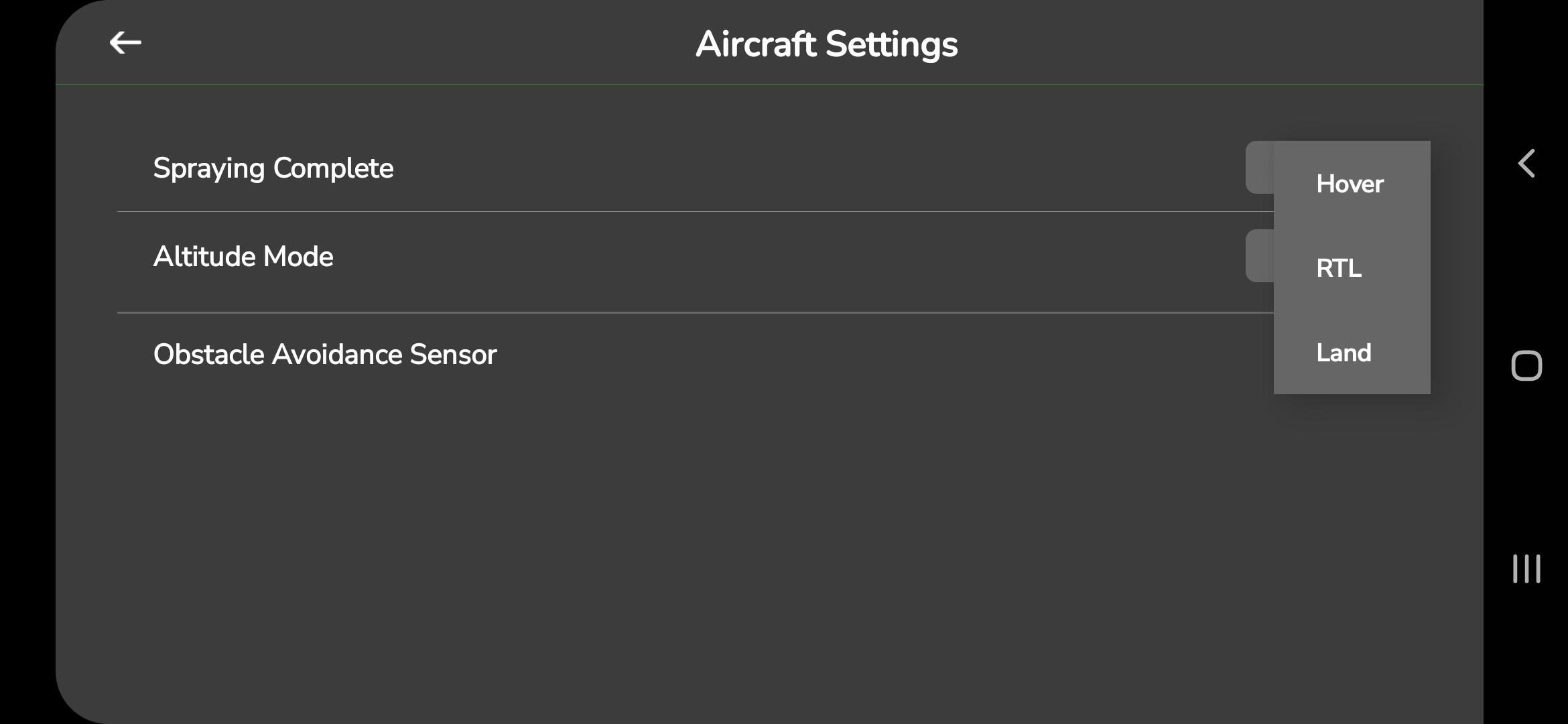 This setting determines what the drone should do after completing the spraying mission. You can choose one of the following actions: