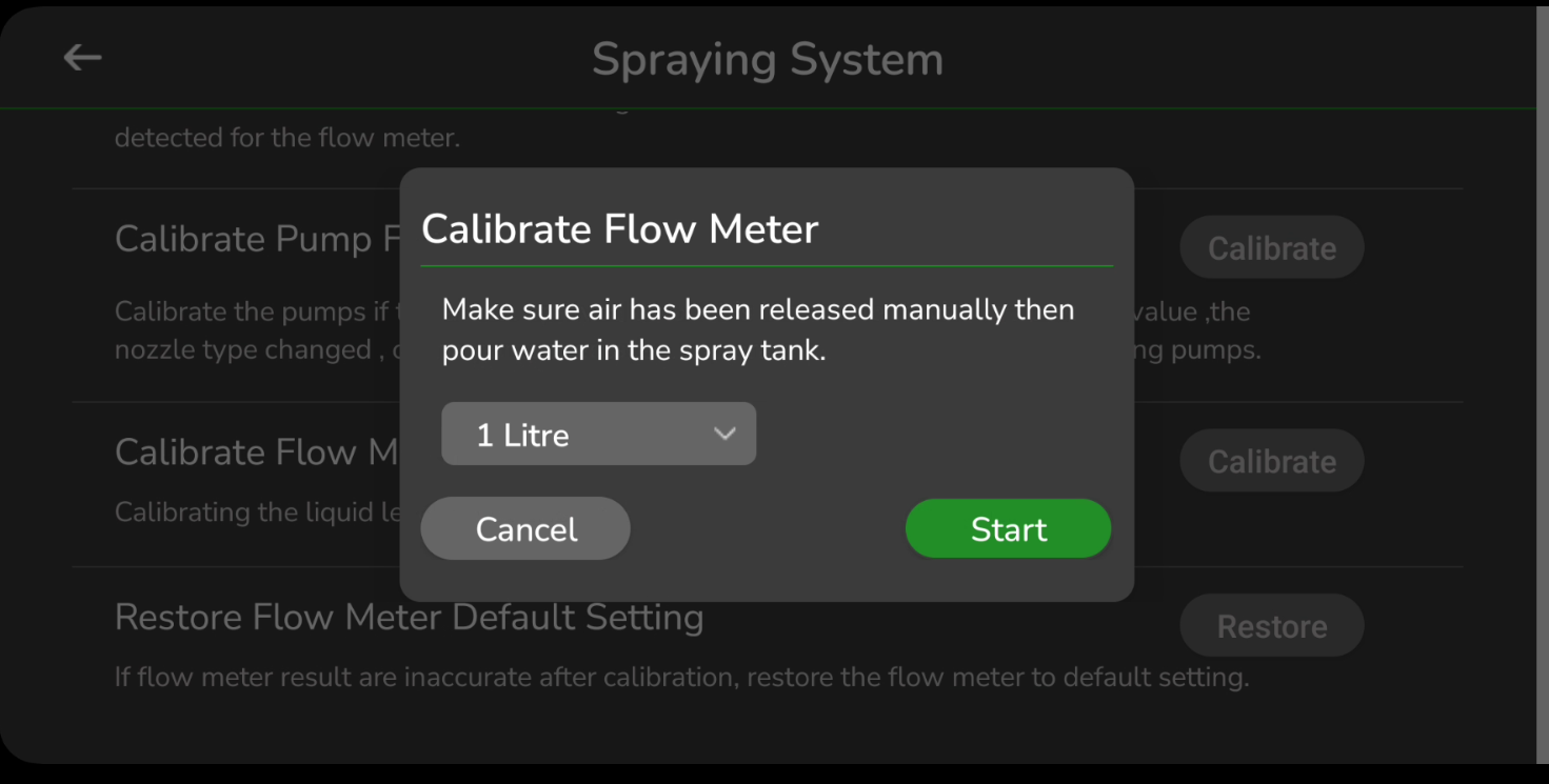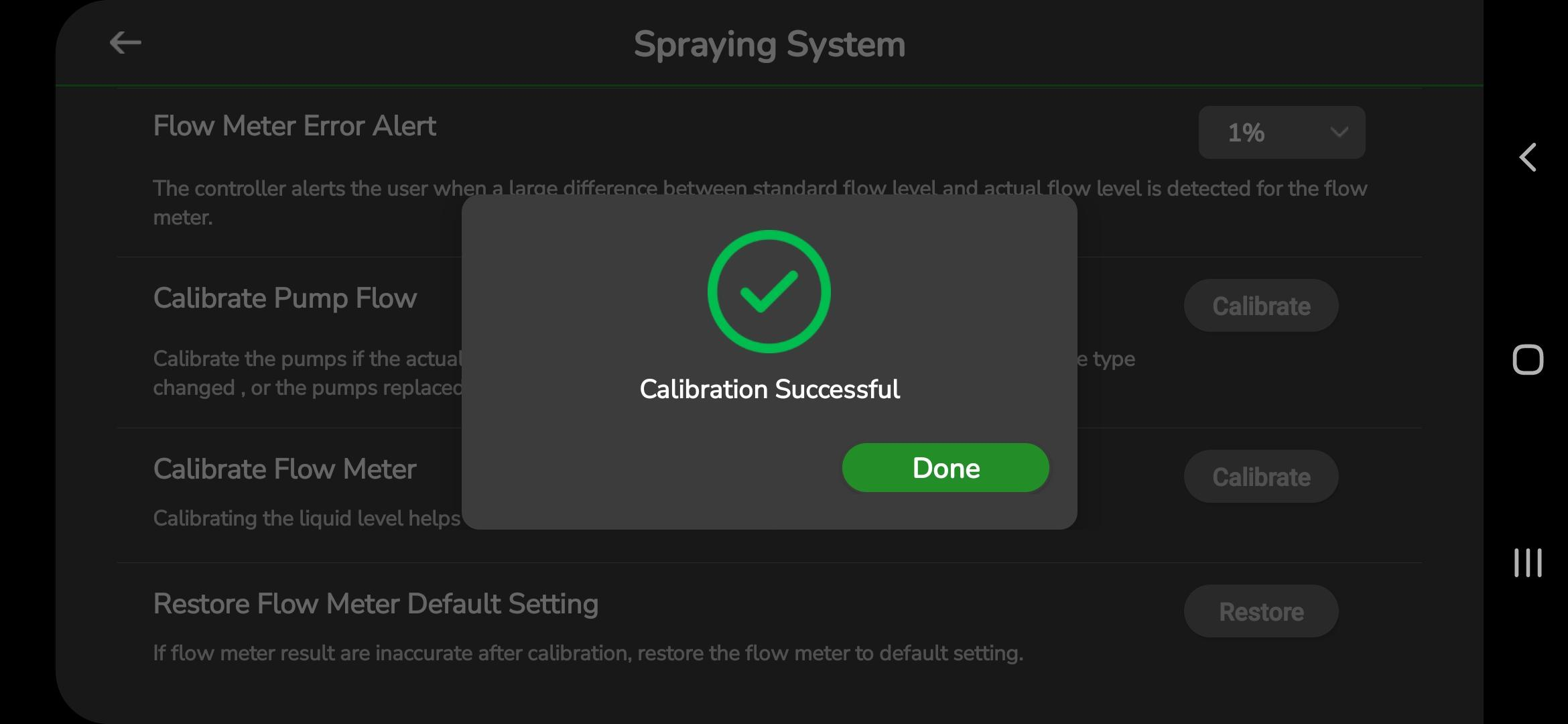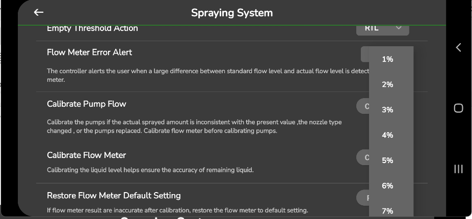 Adjust the spray percentage using the slide bar, then tap OK to perform a test.