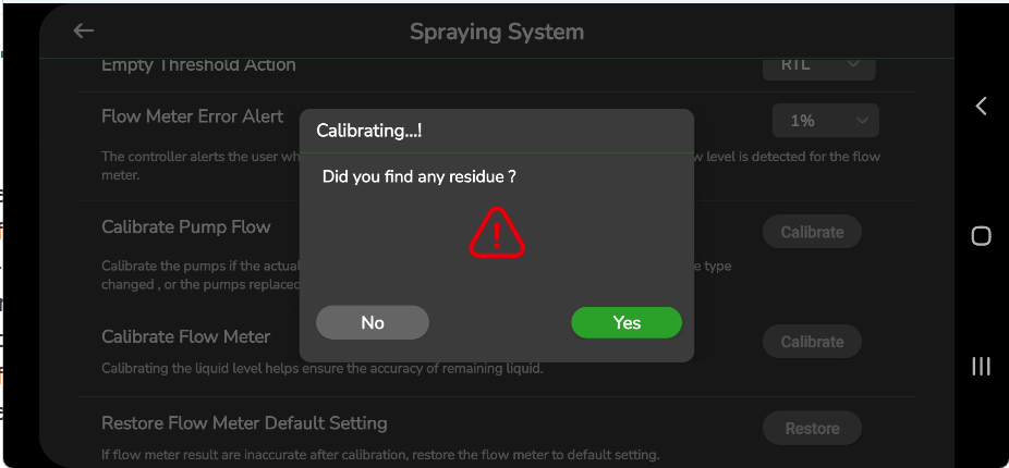 - Tap Yes if residue is present. You will be asked to repeat calibration.