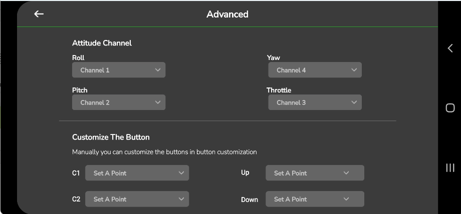 These settings allow you to configure aircraft-related parameters for your drone. The available options are shown below.