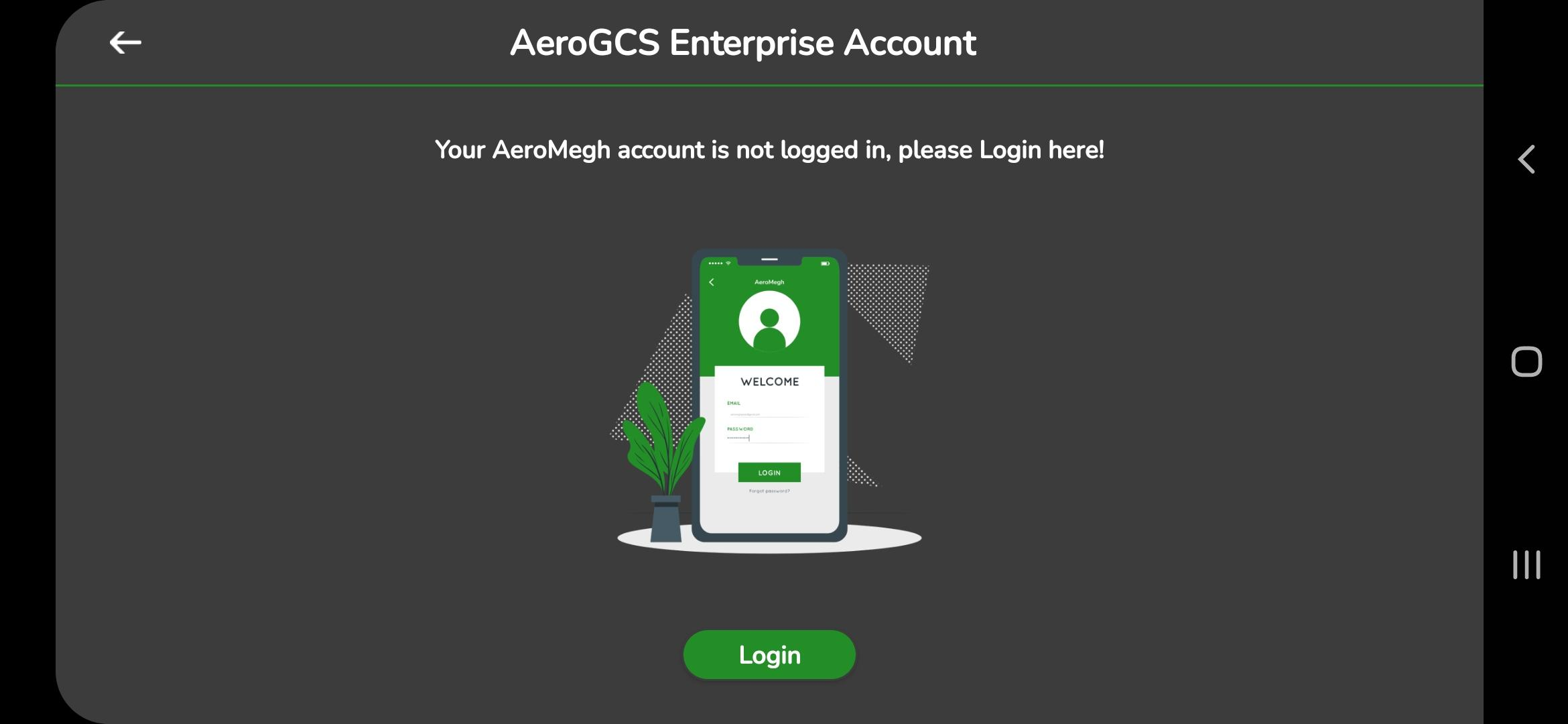 | Note If you do not have an AeroGCS Enterprise account, please create one before logging in. Refer to the “Creating AeroGCS Enterprise Account” section of this manual for step-by-step instructions. An active account is required to use Enterprise-linked project syncing and storage features. |